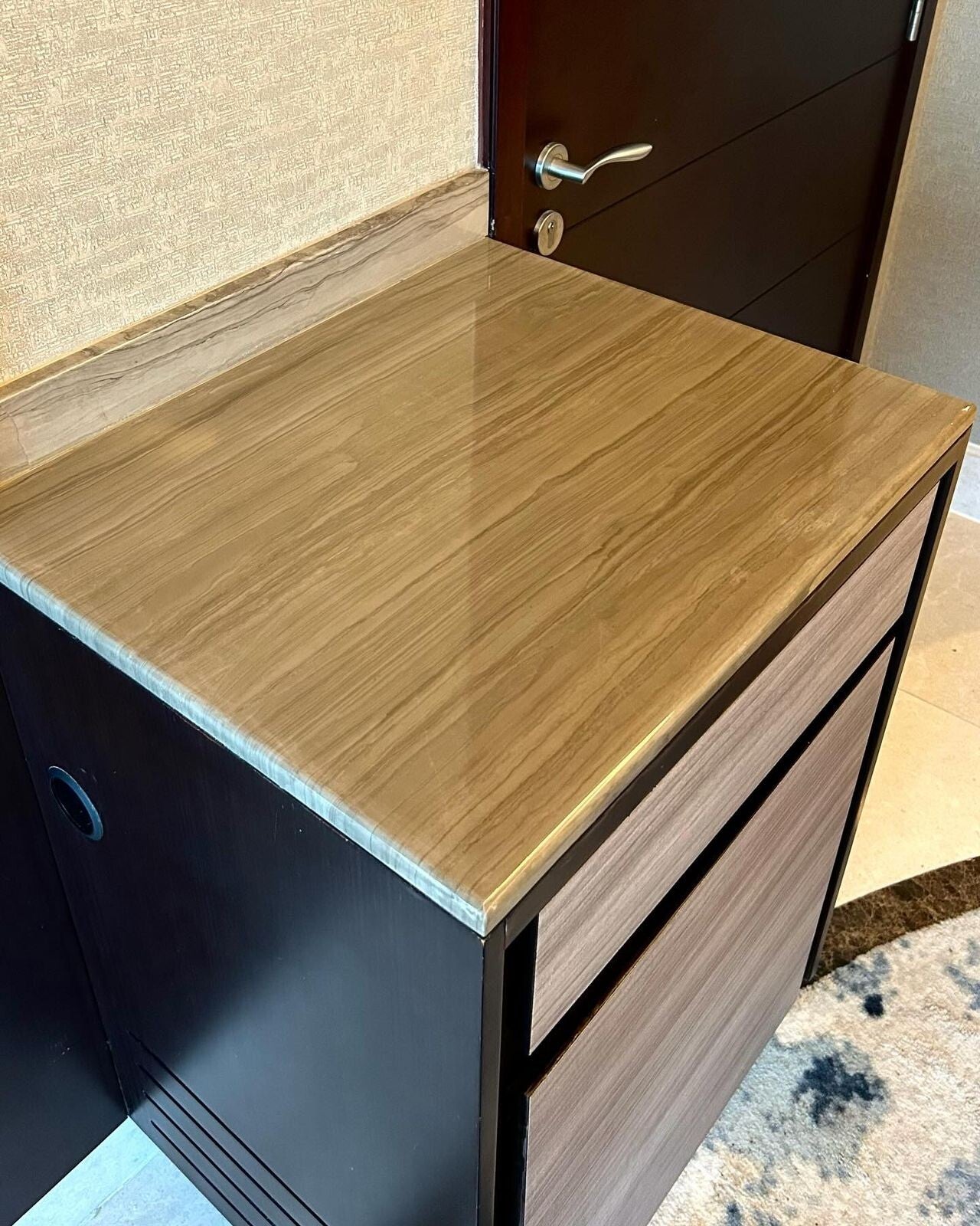 Witness our expertise in large-scale commercial fitouts with the stunning renovation of almost 600 square meters of marble countertops at a prestigious Gulf Hotel. This project highlights our precision, speed, and ability to deliver sophisticated finishes on a grand scale. We capture the dramatic before and after of such transformations.